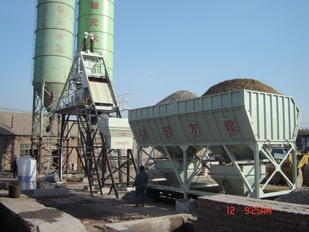 HZS75型混凝土攪拌站是由供料、配料、攪拌、電氣控制及鋼結(jié)構(gòu)部件組成的全自動(dòng)混凝土拌制成套設(shè)備,適用于中等以上規(guī)模的建筑工地、預(yù)制件廠和商品混凝土生產(chǎn)廠。 該站骨料配料部分,采用PL2400型混凝土配料機(jī),裝載機(jī)上料,氣動(dòng)扇型門給料,電子秤計(jì)量,可同時(shí)儲(chǔ)存三種骨料,骨料計(jì)量在地面進(jìn)行,計(jì)量好的料由提升斗送到攪拌機(jī)中。水泥和粉煤灰由水泥倉(cāng)儲(chǔ)存,螺旋機(jī)輸送,水泥秤、粉煤灰稱計(jì)量:水由水箱或蓄水池儲(chǔ)存,水泵供水,水秤計(jì)量:液體外加劑:在外加劑儲(chǔ)存箱中攪拌均勻后,由水泵送入外加劑秤進(jìn)行計(jì)量。整個(gè)配料與攪拌全過(guò)程由電控系統(tǒng)控制自動(dòng)完成(也可進(jìn)行手動(dòng)控制),控制系統(tǒng)可存儲(chǔ)20個(gè)不同的混凝土配比供用戶隨時(shí)調(diào)用,如配打印機(jī)還可完成各種報(bào)表打印,如用戶需要還可配置砂含水量測(cè)試儀(選配)。 該站整體結(jié)構(gòu)簡(jiǎn)單,安裝調(diào)試方便,系統(tǒng)配置先進(jìn),各物料的計(jì)量全部采用稱量方式,計(jì)量和控制系統(tǒng)全部采用進(jìn)口元件,工作可靠性高。 1.2 主要技術(shù)參數(shù) 生產(chǎn)能力 75 m3/h 配套主機(jī) JSl500 骨料計(jì)量精度 ±2% 水計(jì)量精度 ±l% 水泥計(jì)量精度 ±1% 外加劑計(jì)量精度 ±l% 卸料高度 3.8m 整機(jī)質(zhì)量 46t(含水泥倉(cāng)) 整機(jī)裝機(jī)功率 140kW